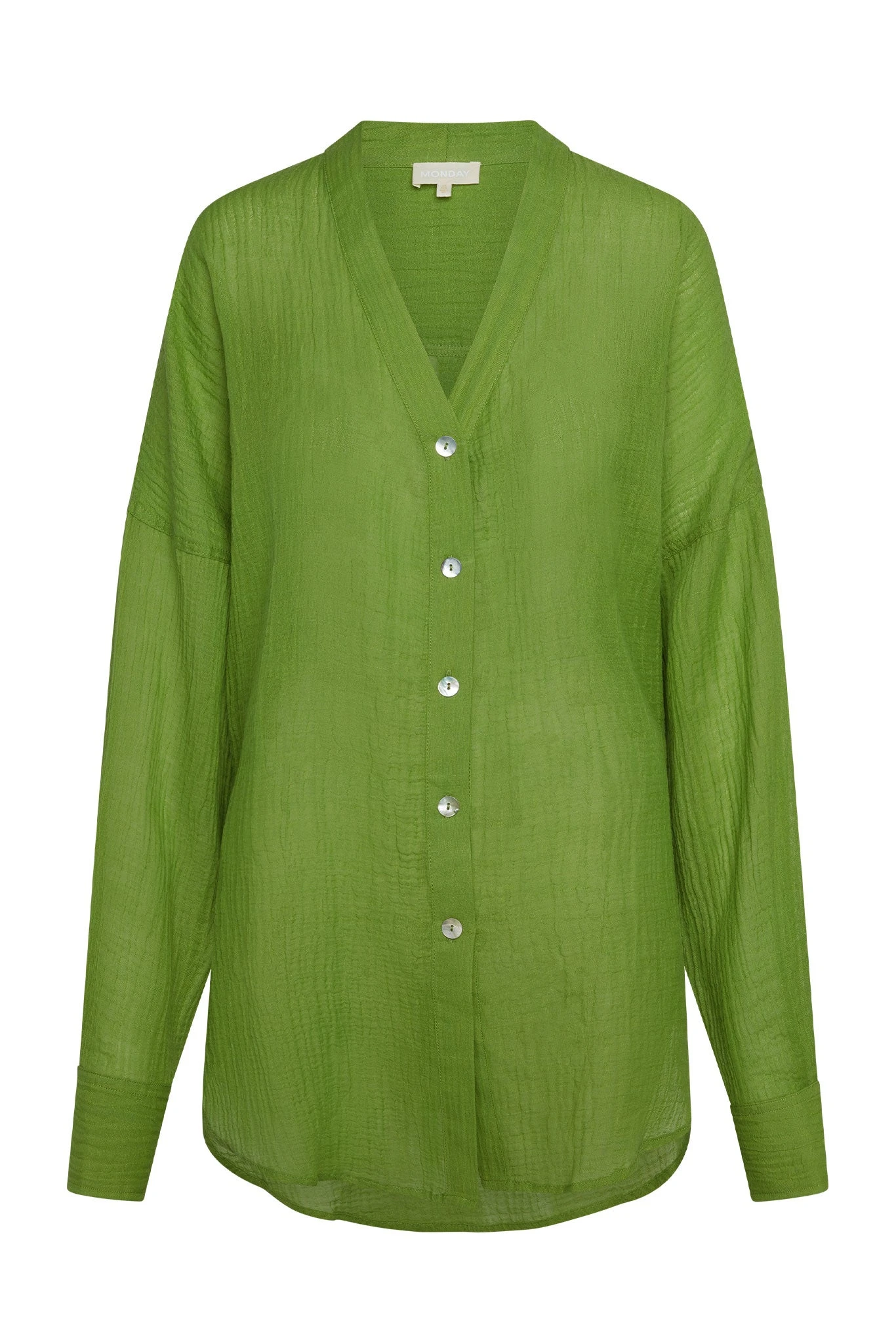 The ultimate beach to bar look can be achieved in the Barcelona Tunic. With an airy oversized fit, this transitional piece can be worn open, over your favorite swimwear or tied at the front with cute pants. Complete with side slits, flowy sleeves and center front seashell buttons.Â