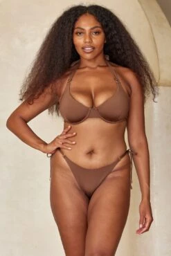 Do you love the look of a triangle top and the support of an underwire? Well the Honolulu is just the top for you. Designed to give you the ultimate support and adjustability, this halter top will be your new go to! With the addition of a ring details, the Honolulu perfectly to pairs with the Morocco Bottom.