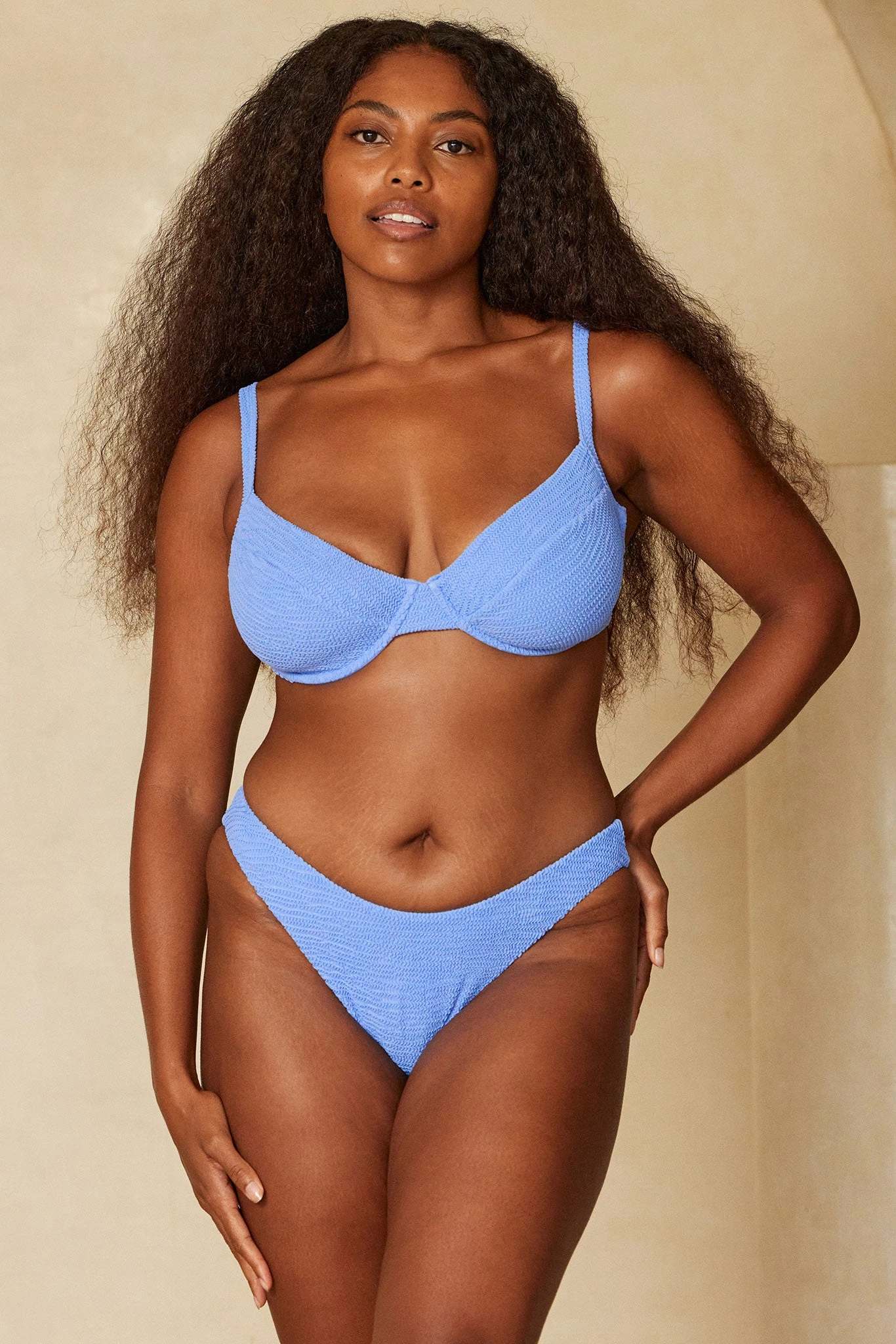 The second underwire top in the Monday Swimwear collection, the Maui Top draws attention with its cleavage enhancing demi-cups perfected by delicate shoulder straps and gold sliders. This top is adjustable around the bust with a soft, simple back tie so it supports you, comfortably, in all the right places. Our super supportive and flattering crinkle fabric is fully lined and tailored to make you look and feel your best.