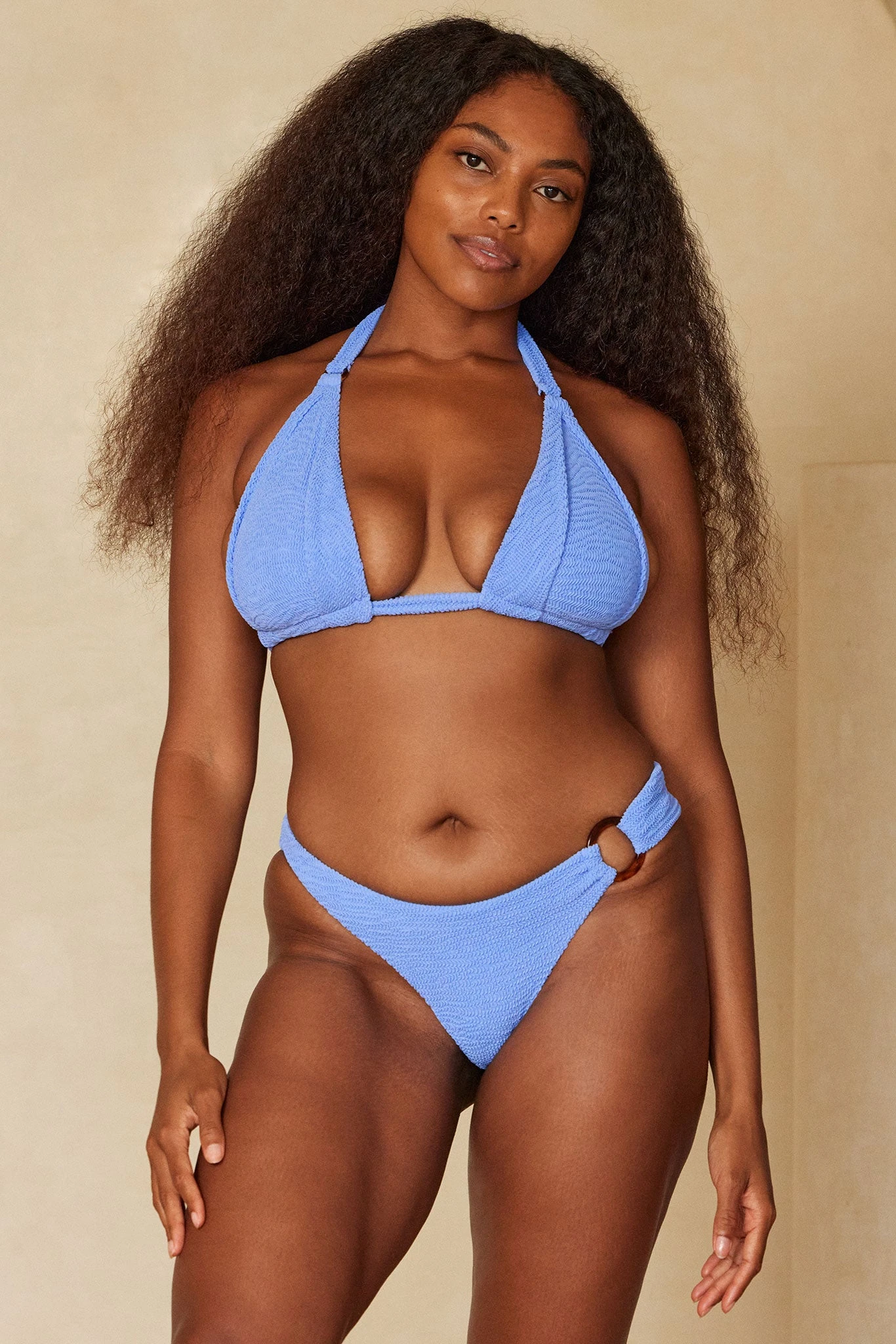 Not your everyday triangle! If you loved our Tulum Top, you’ll love our the Morocco Top even more. Featuring gold ring hardware, soft adjustable back & neck ties for comfort and pleated cup detail for the perfect lift and support. Our super supportive and flattering crinkle fabric is fully lined and tailored to make you look and feel your best.