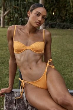 The Palma Bottom is shaped to flatter and accentuate your backside! This tie-sided triangle bikini bottom features small detailed gold hardware hanging from each tie and a custom fit each wear.