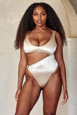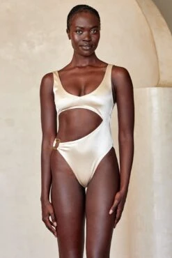 We can’t take our eyes off the St. Barth’s One Piece. From the sultry cut-out detail to the flattering silhouette, this must-have one piece is made to show off your figure. Complete with a rounded v-neckline, adjustable back tie closure and a gold ring detail. All eyes on you!